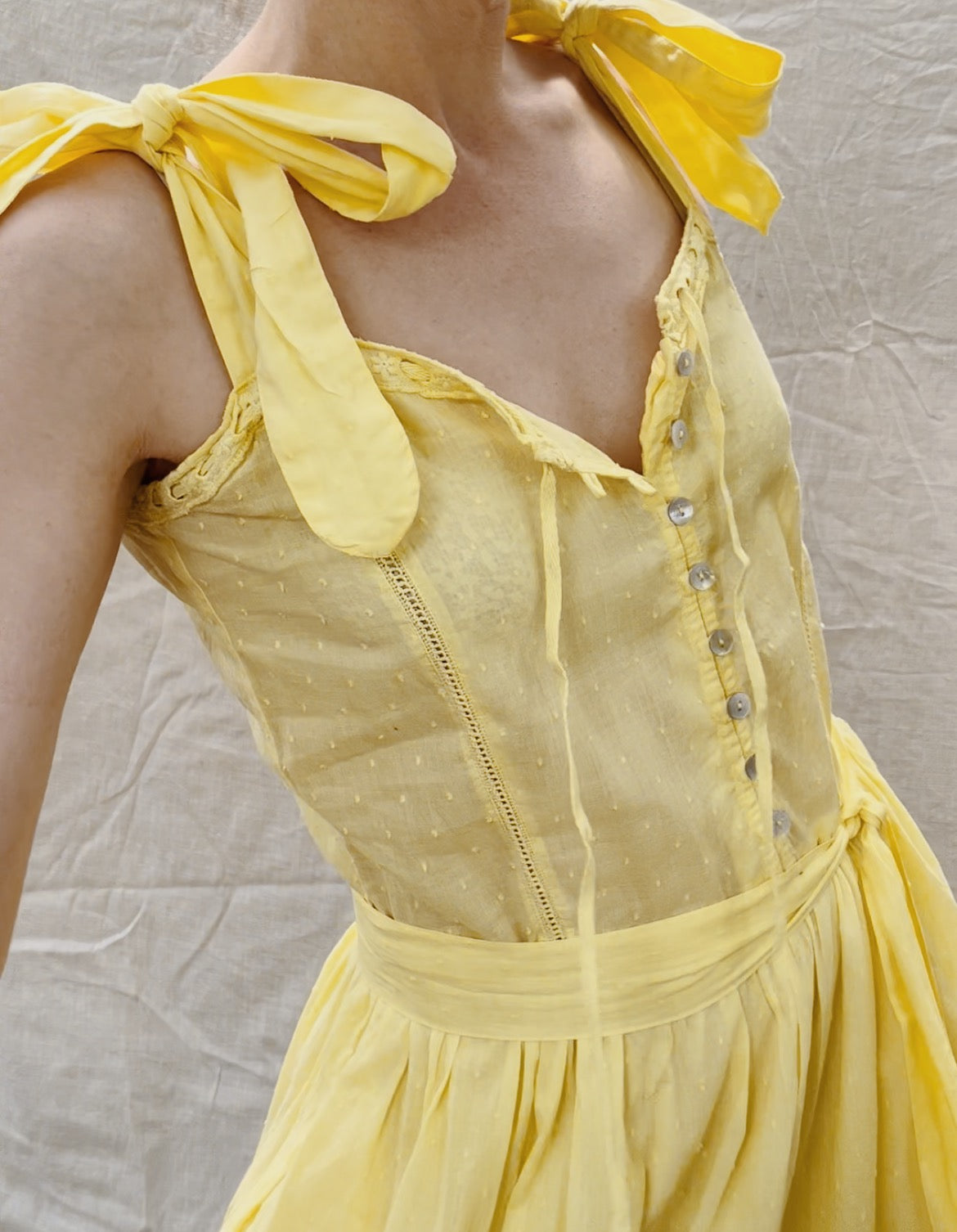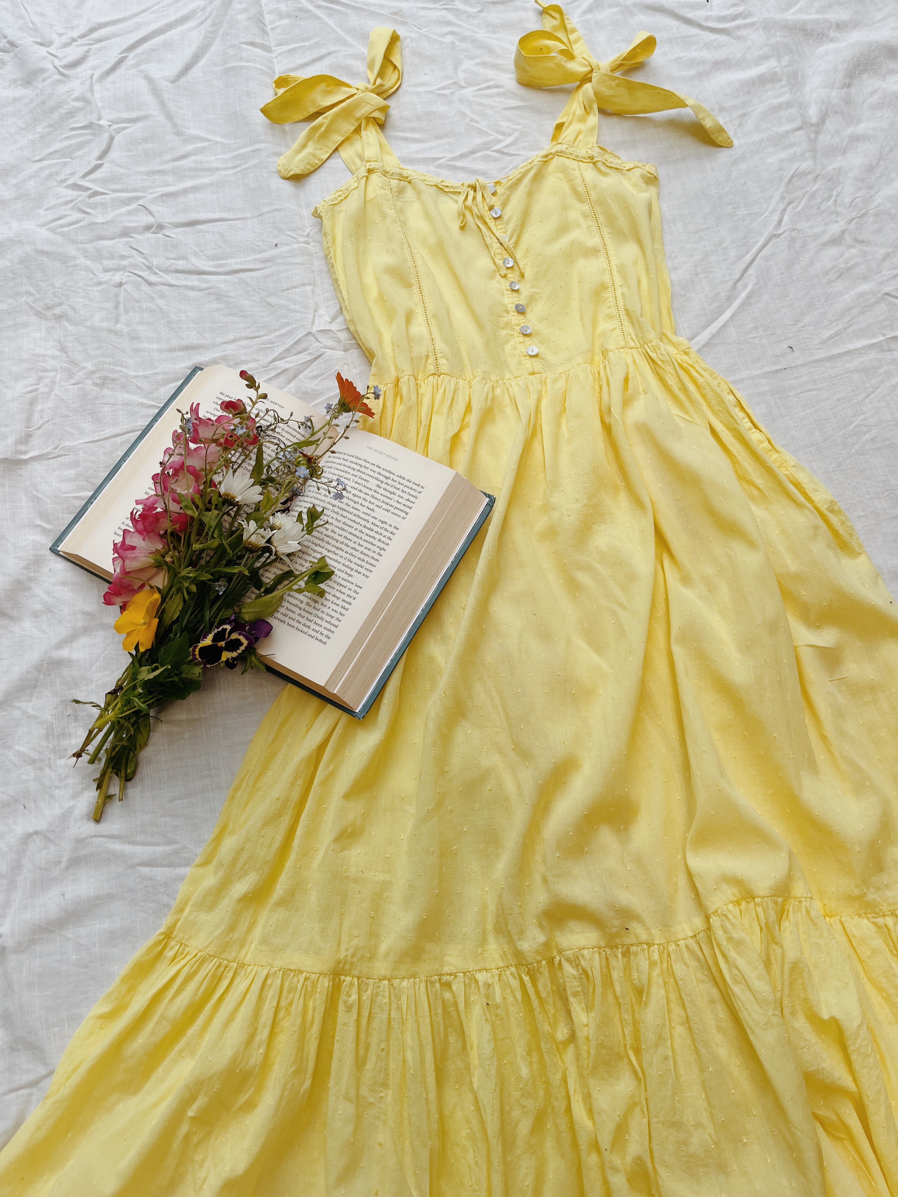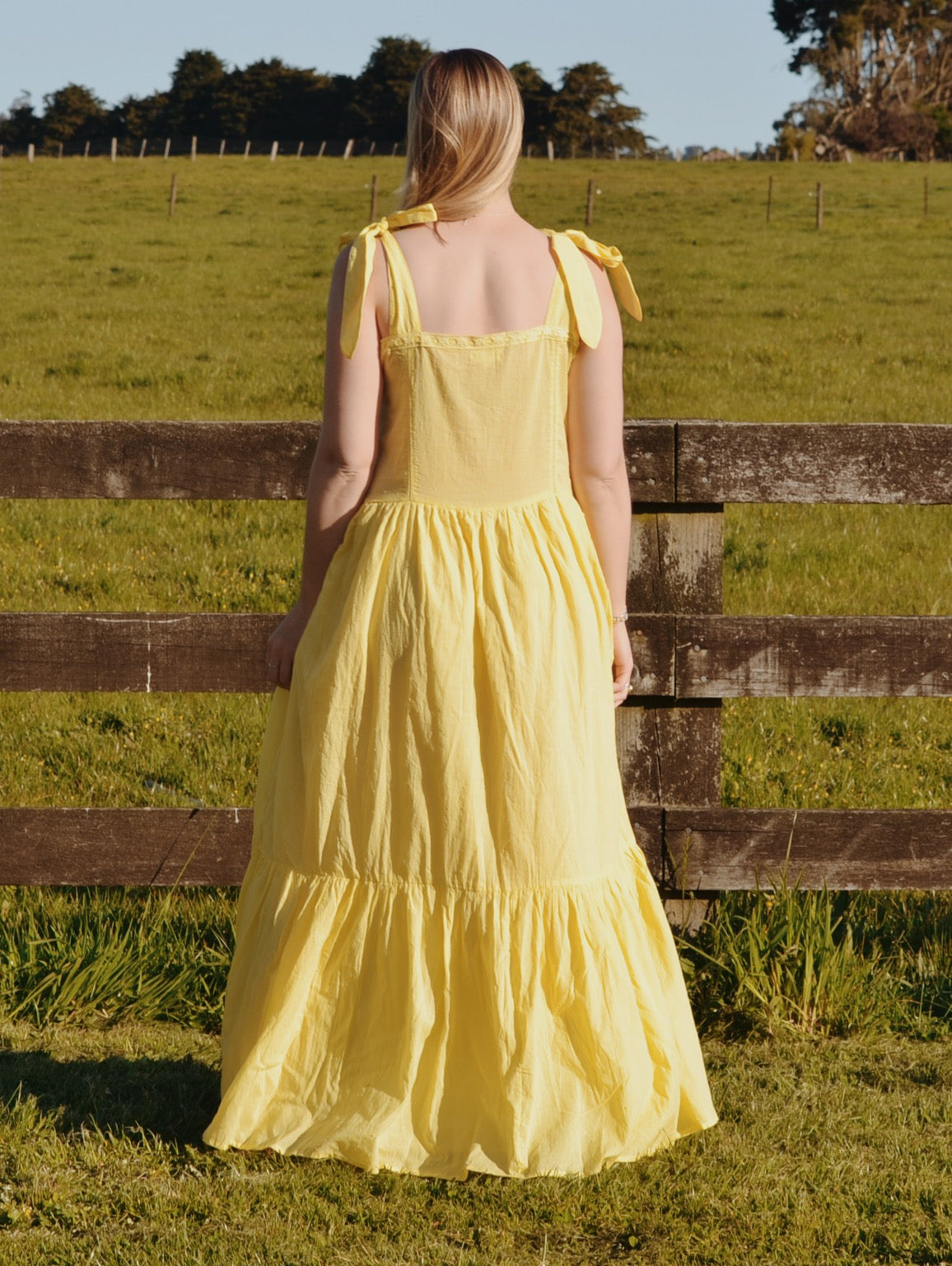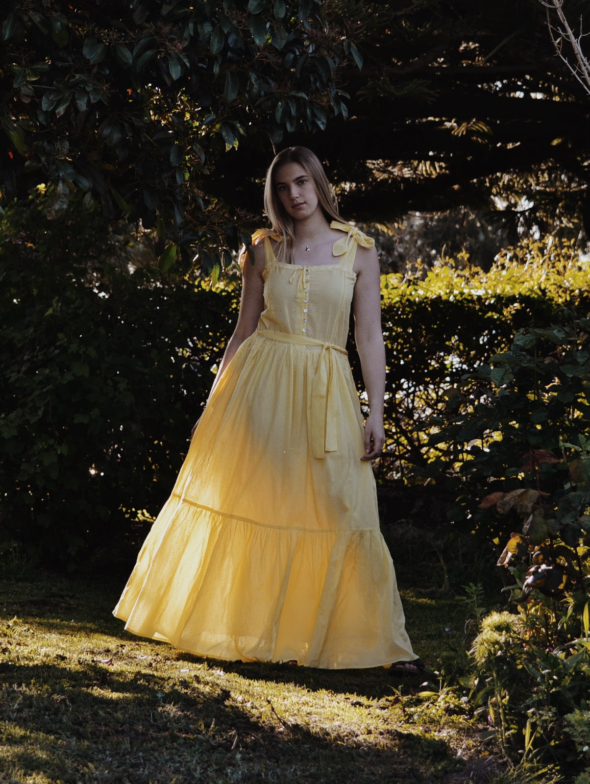 The dreamiest of dresses, made for wandering the garden in the sunshine and picnics under apple trees. Beautifully soft with feminine lace detailing and a long flowing silhouette. Featuring cotton lace, tie straps and a functional button opening, perfect for breastfeeding.