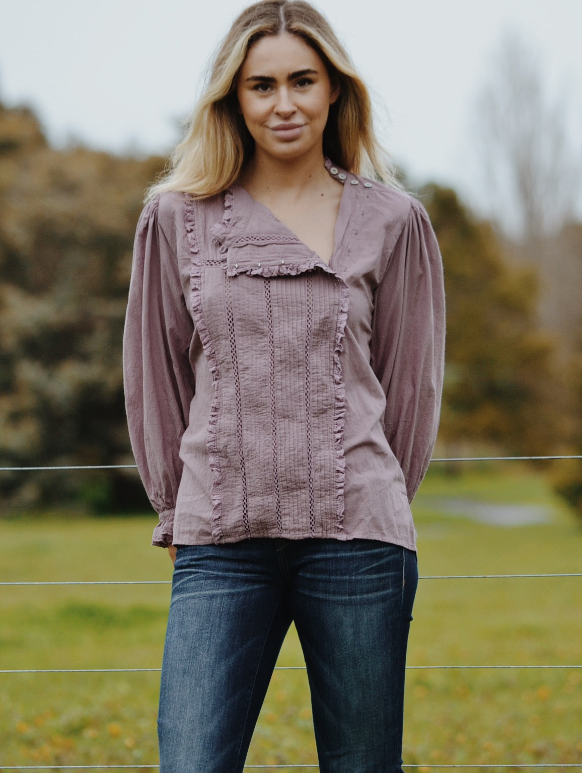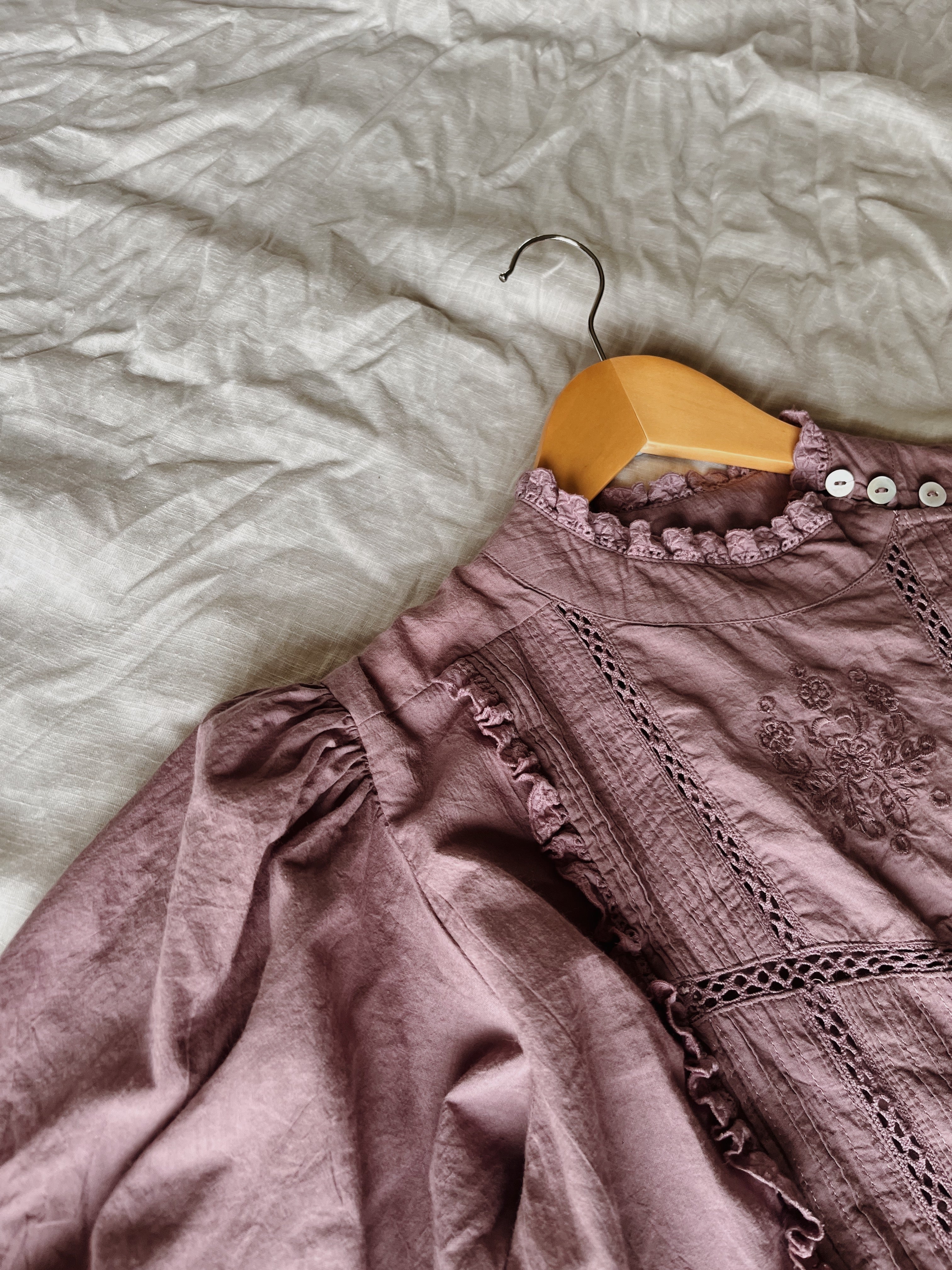 100% RECYCLED COTTON - PAULINA DUSTY LAVENDER COTTON BLOUSE