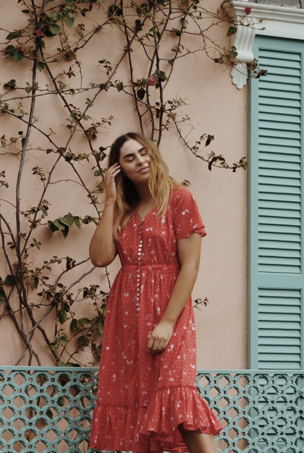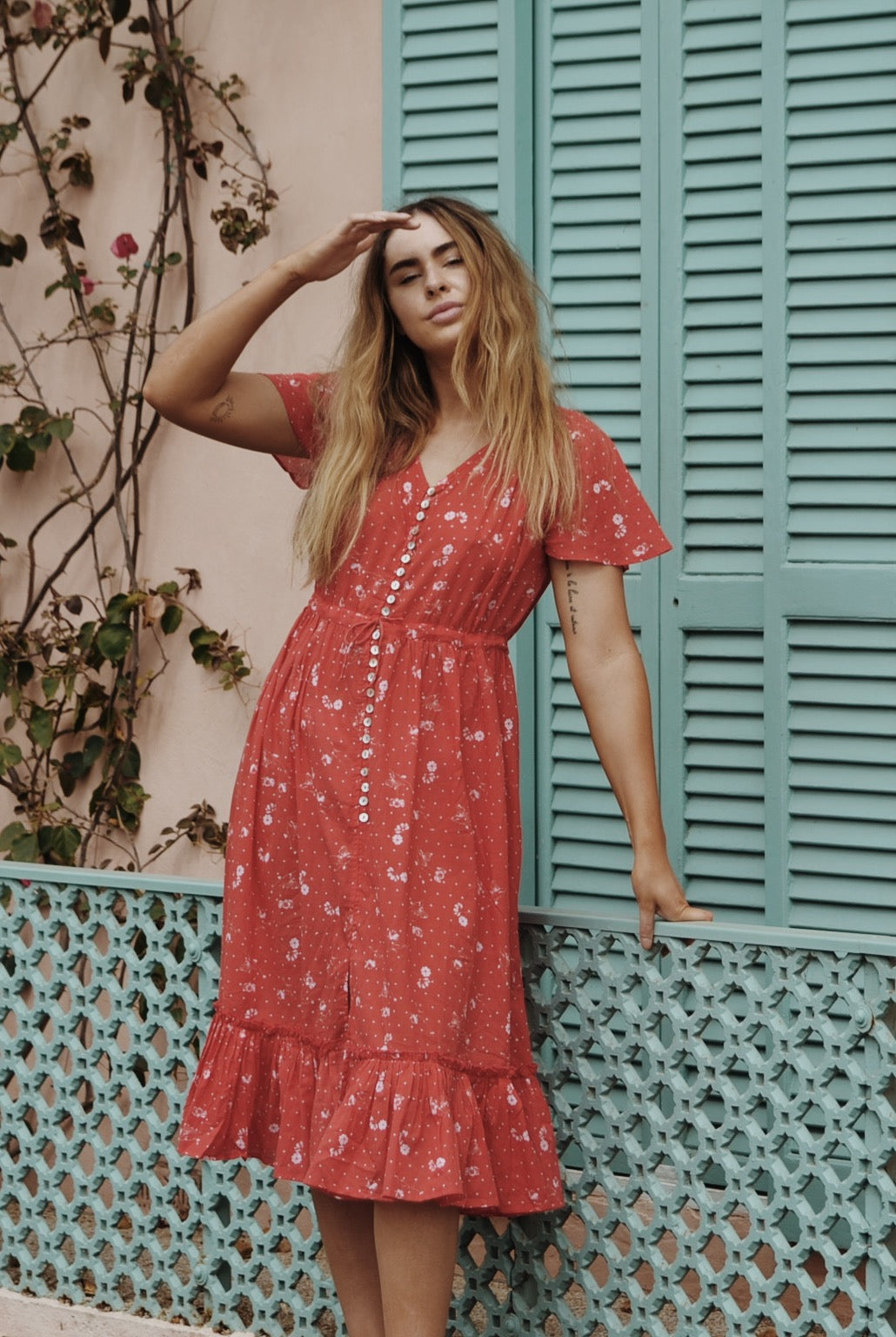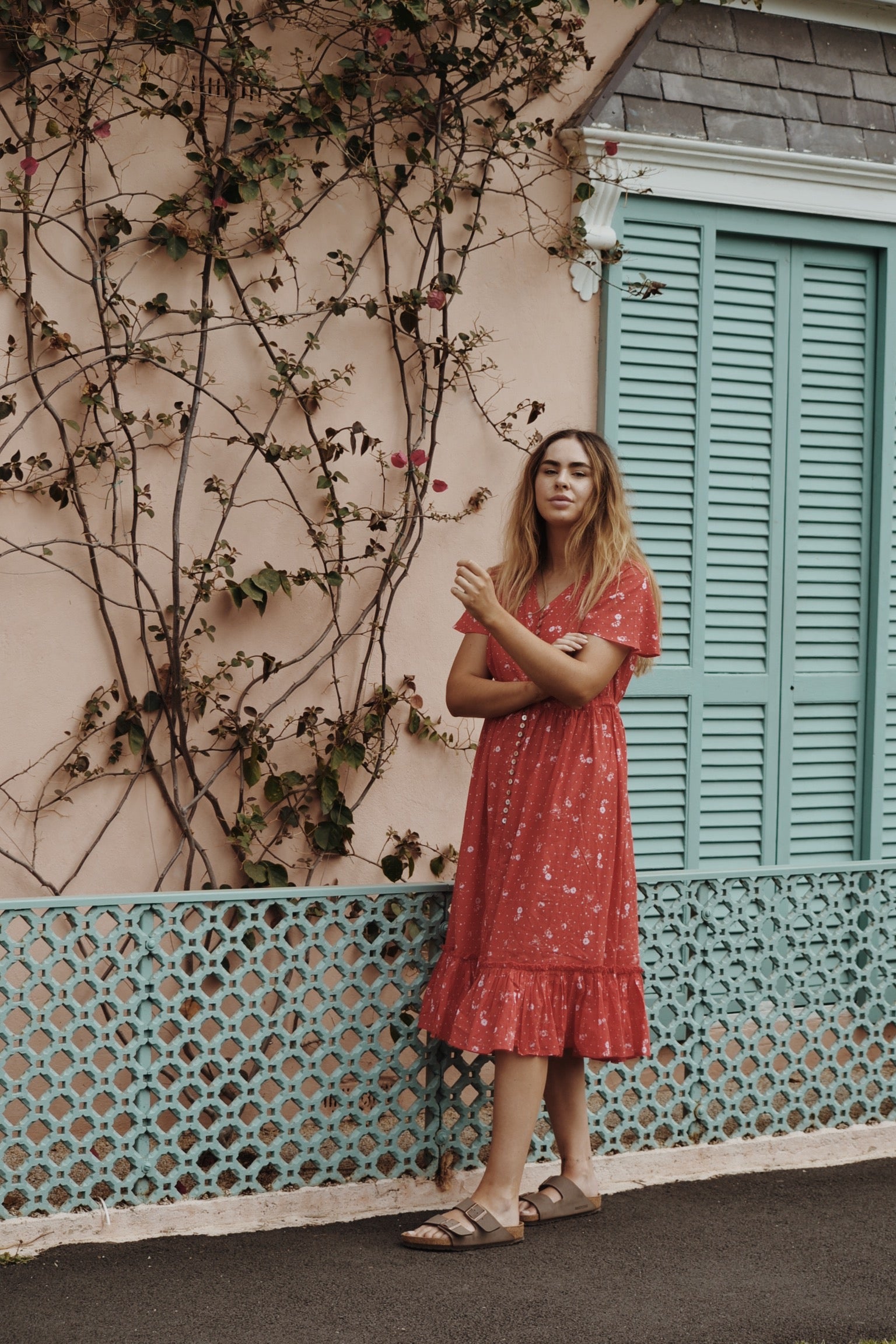 100% Cotton. This beautiful, breezy style will have you in twirls. An easy, relaxed style dress you can throw on effortlessly and feel feminine. The flattering silhouette will suit most body shapes and cinches at the waist with an adjustable drawstring waist. Inspired by dresses of times gone by, you can't help but feel a sense of nostalgia in this classic style. Light and cool to wear, just as perfect for picnics barefoot by the creek as it is for romantic dinners. Made in a custom cosmos floral print.