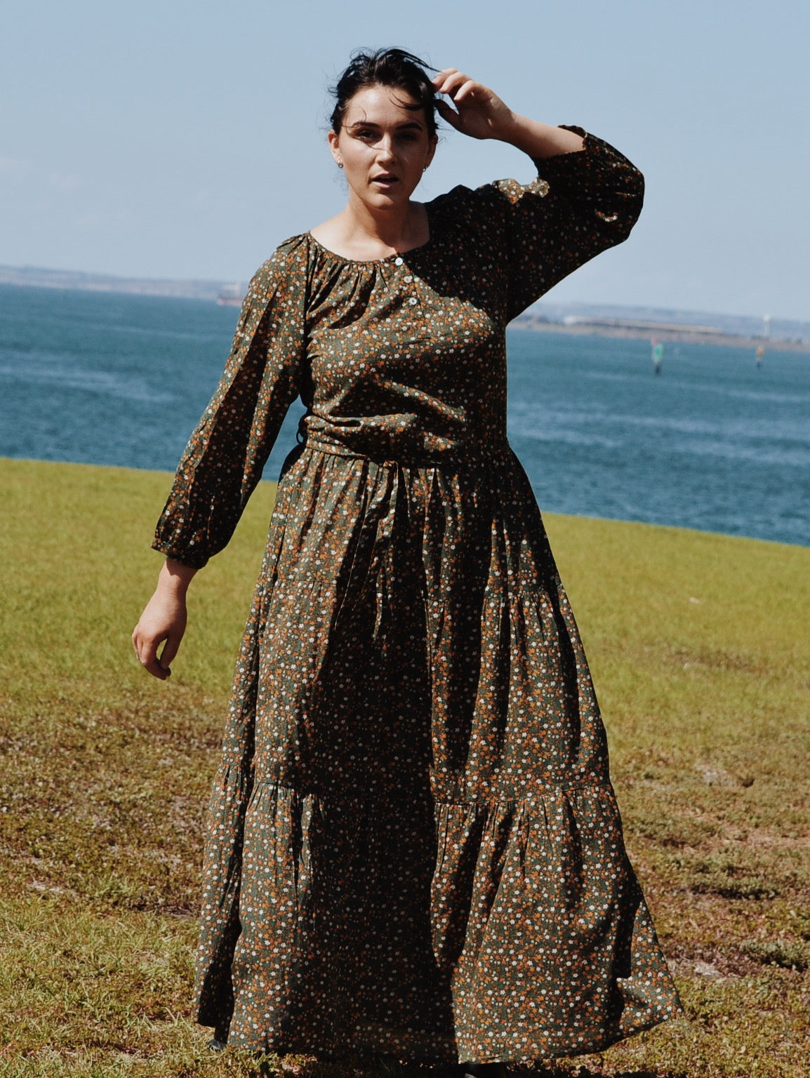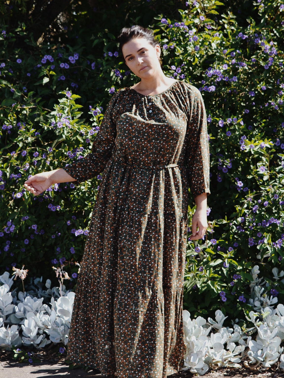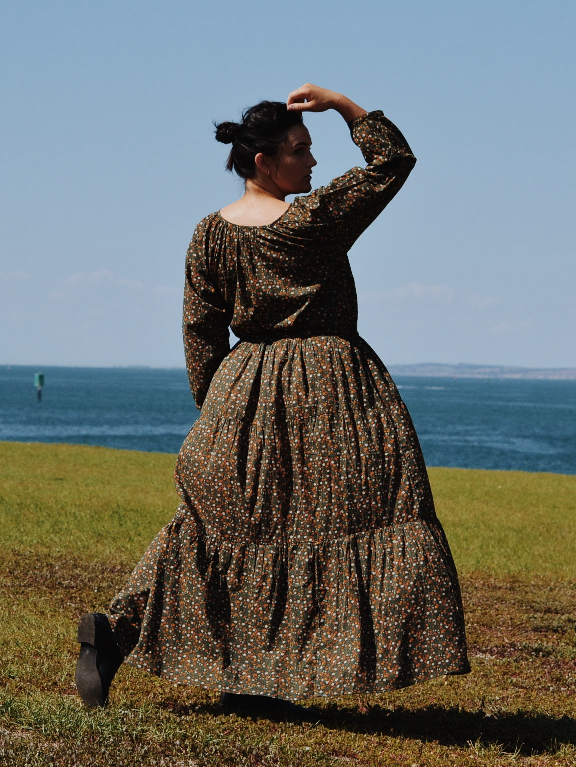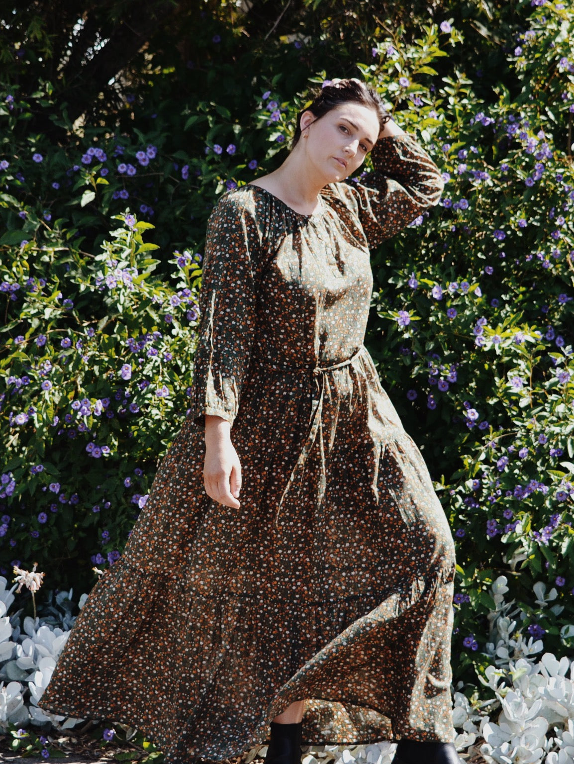 The tiers give the dress a soft, flowy feel, flattering on many different shapes. You may choose to wear her free flowing or add the tie belt and cinch in for a lovely shape.