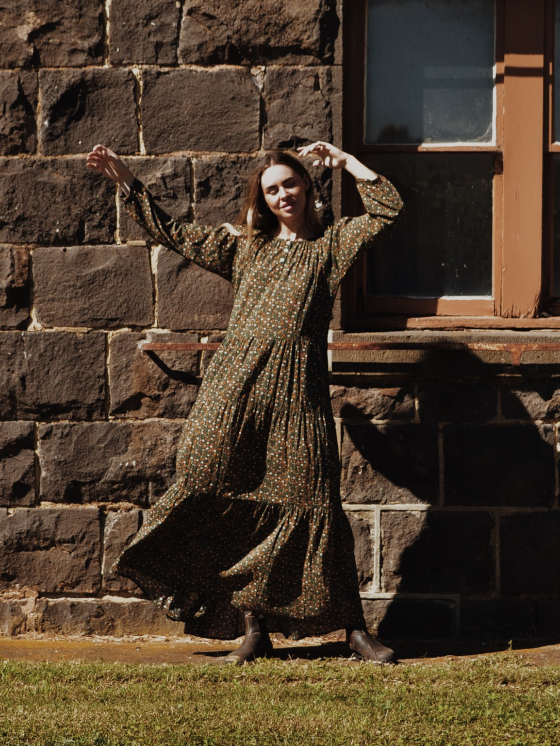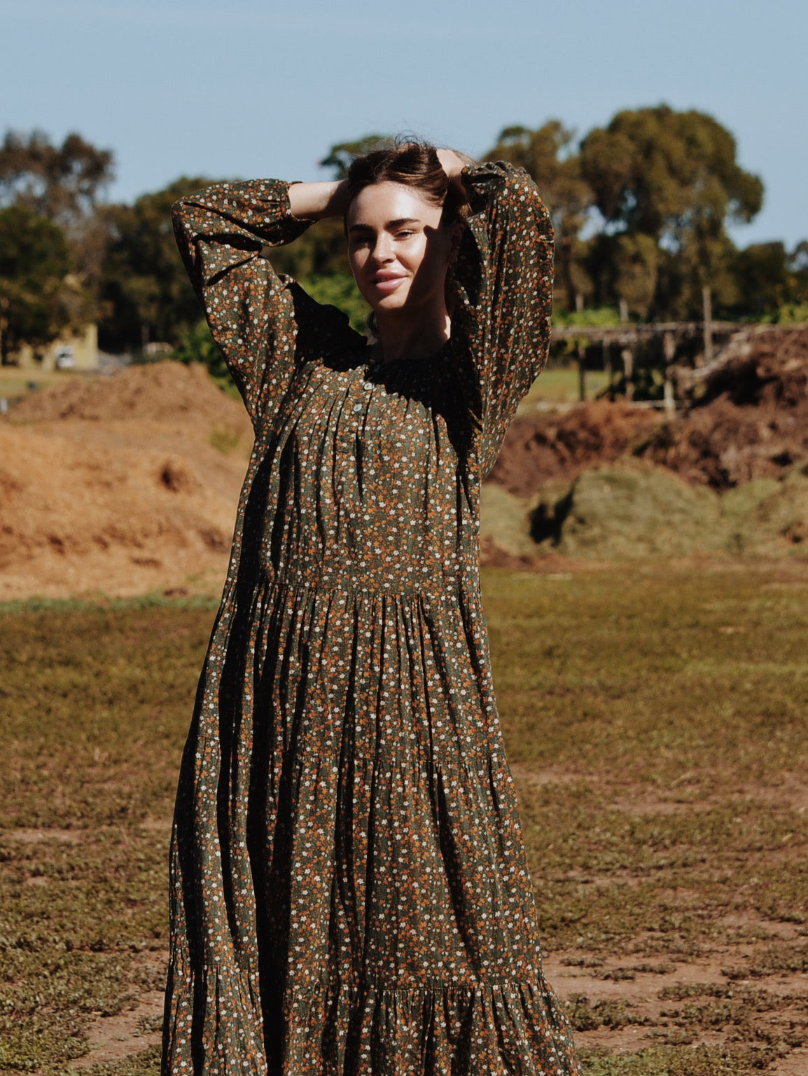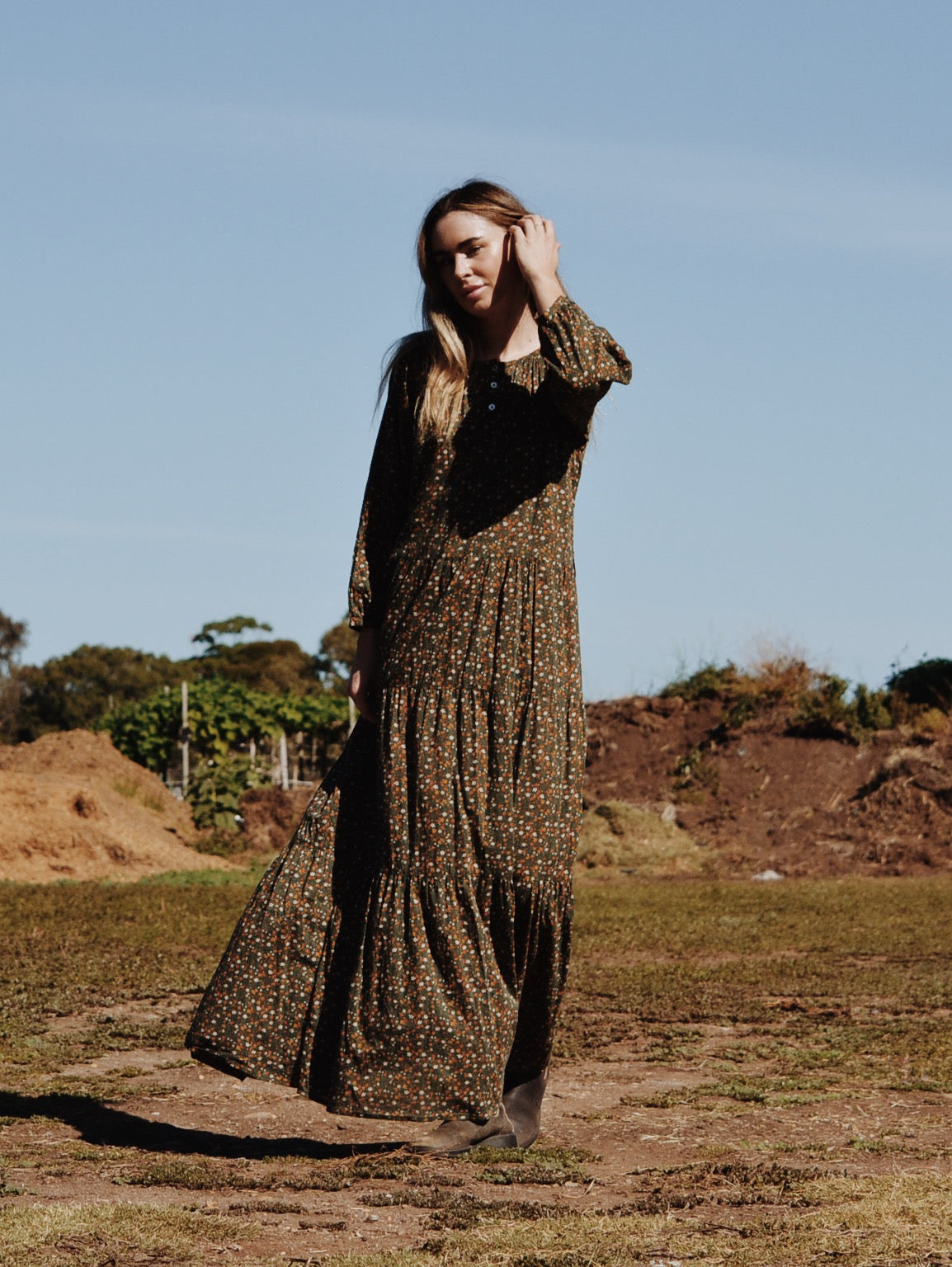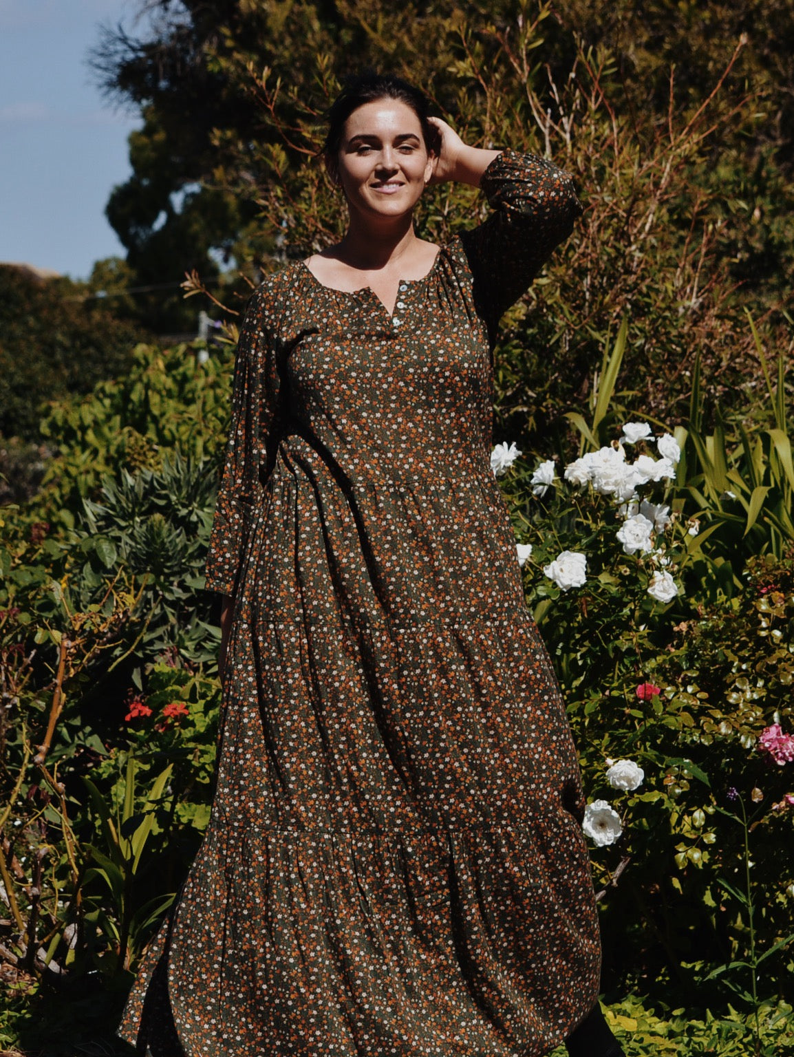 The tiers give the dress a soft, flowy feel, flattering on many different shapes. You may choose to wear her free flowing or add the tie belt and cinch in for a lovely shape.