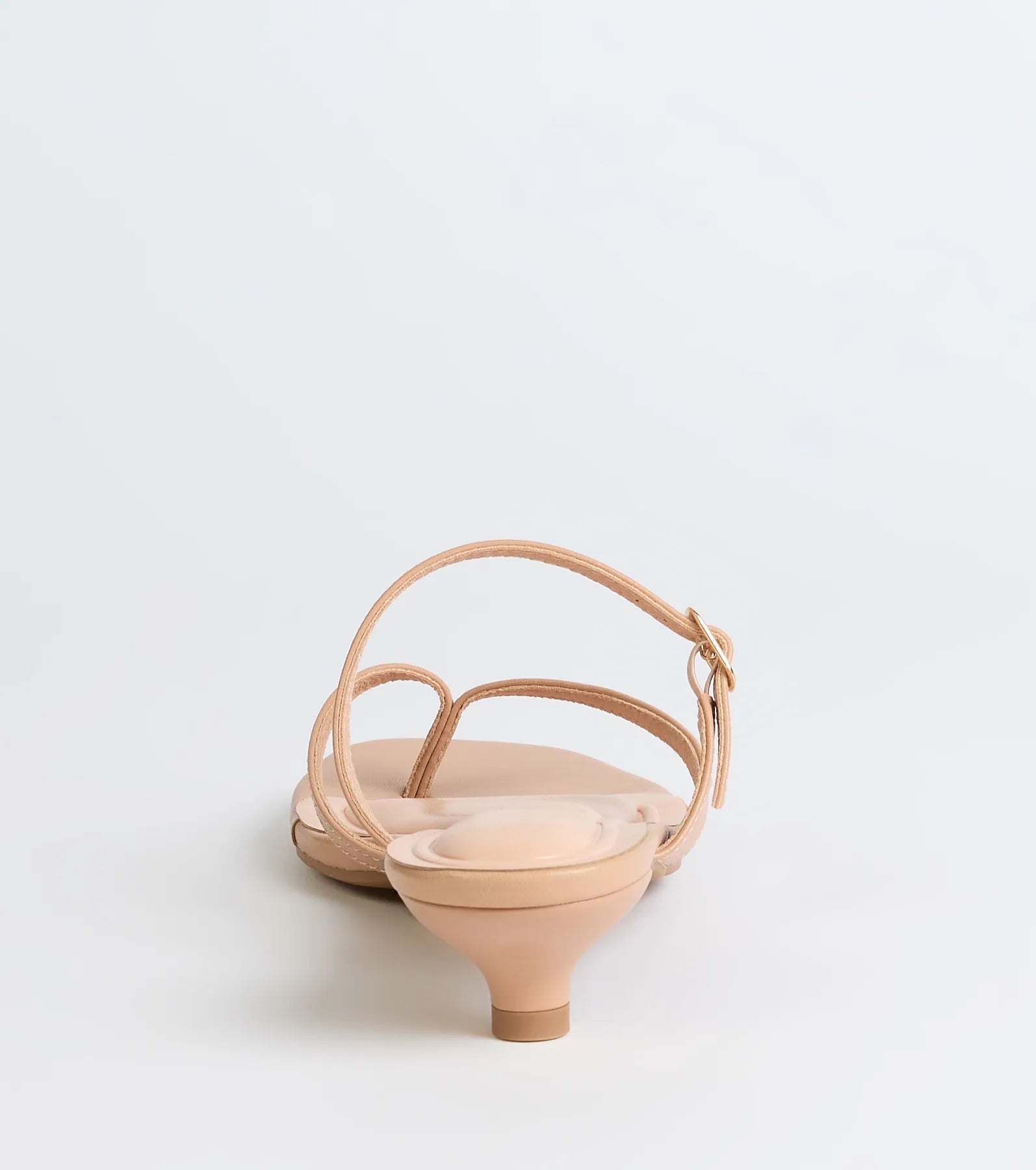 These chic trendy kitten heel mules feature a sleek thong strap design and open back for effortless on-and-off styling.