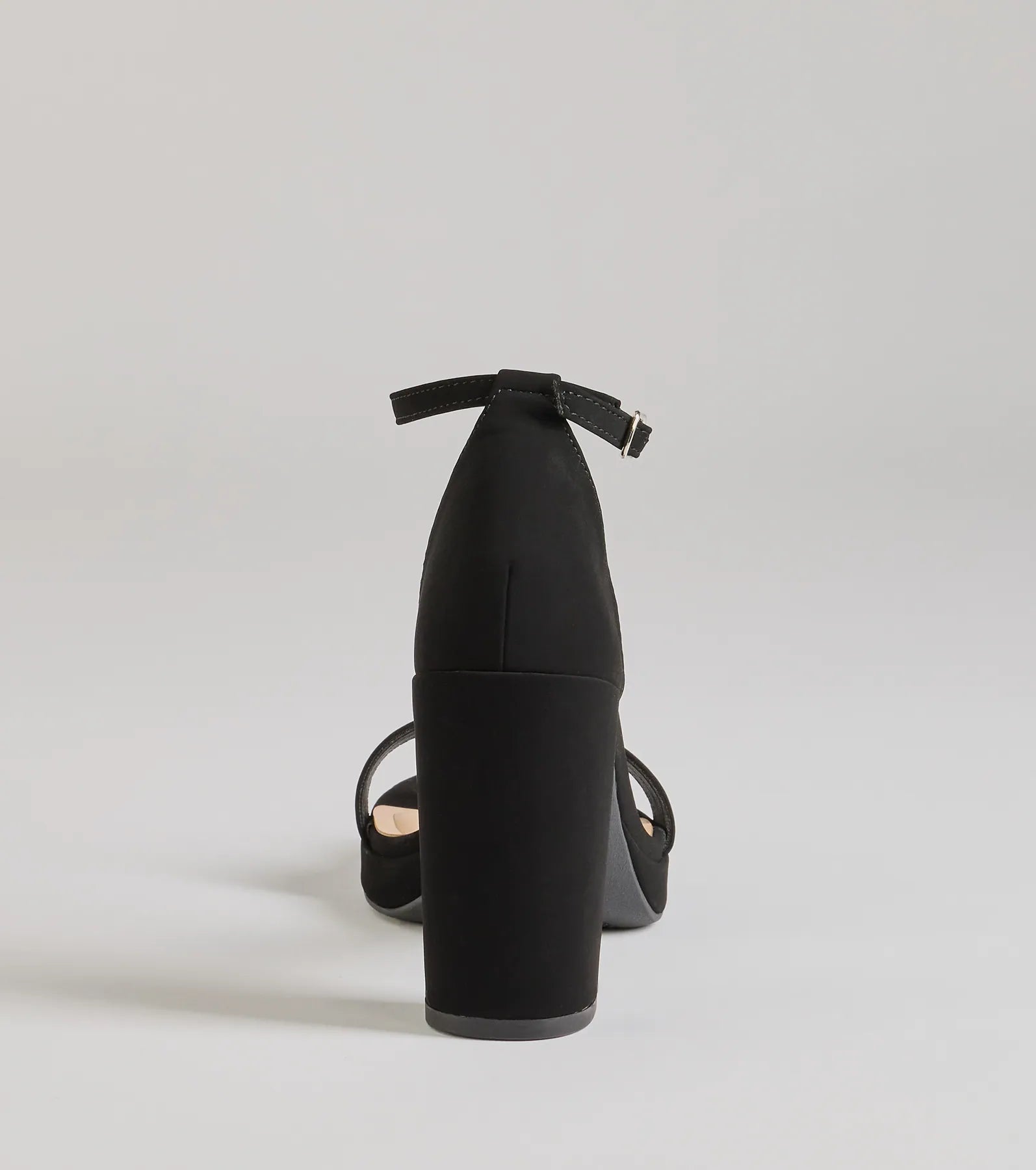 The perfect day-to-night shoe, these classic nubuck block heels elevate every outfit in a sleek design secured with a buckle closure.