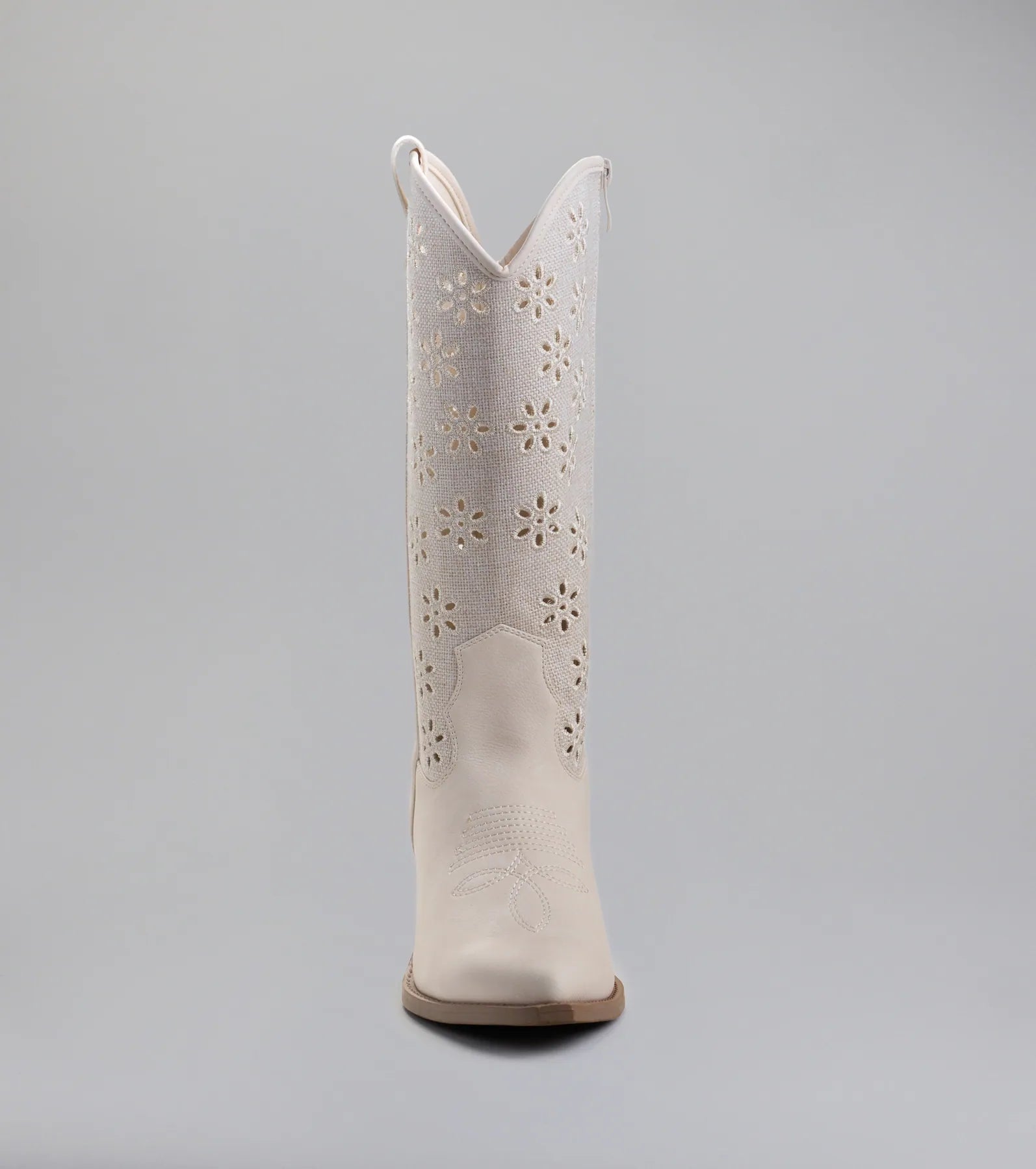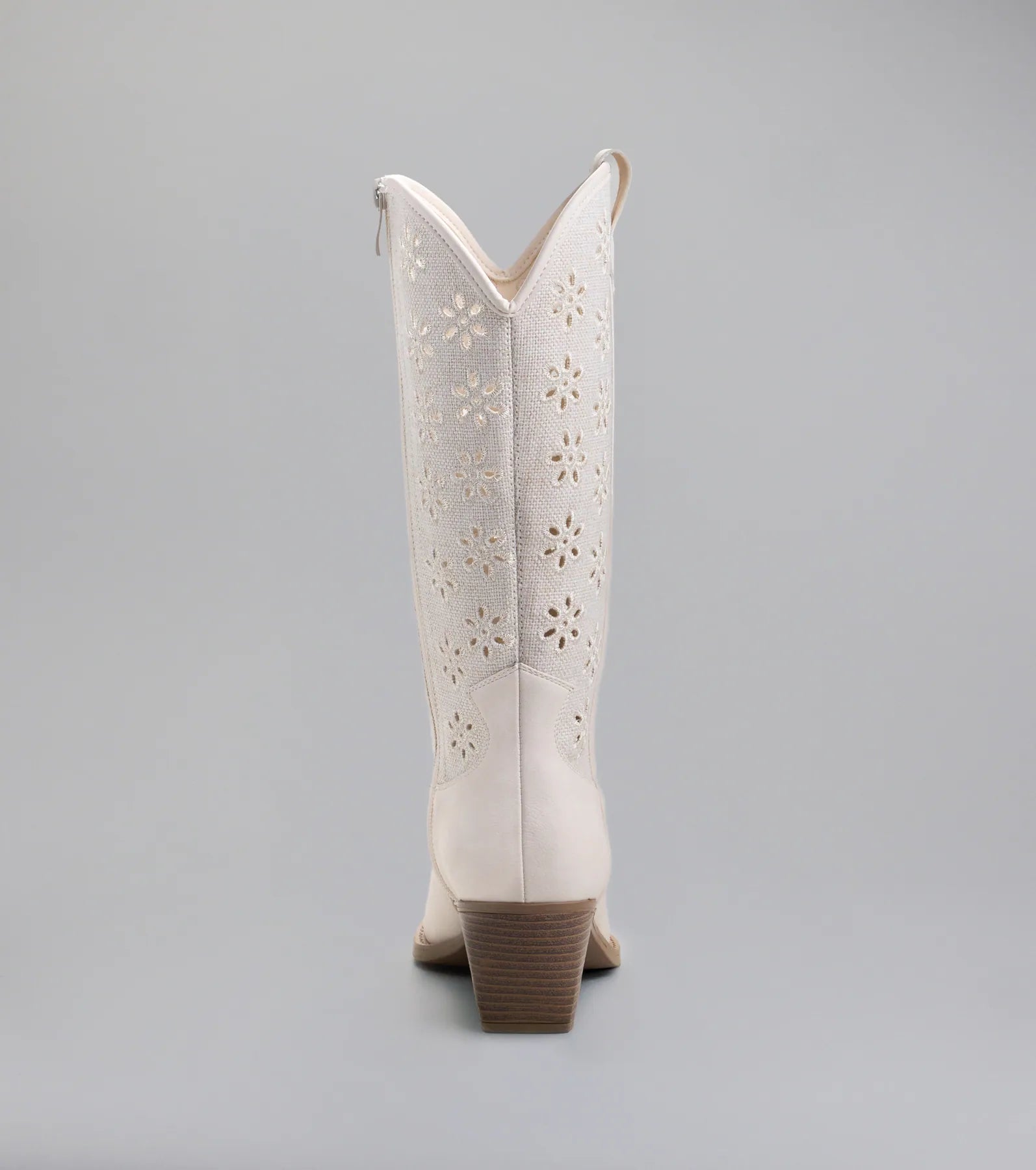 Make a bold statement in these cowboy boots for a concert, festival, or bachelorette trip! These eye-catching boots feature intricate floral cutout designs that add a feminine touch to classic western style.