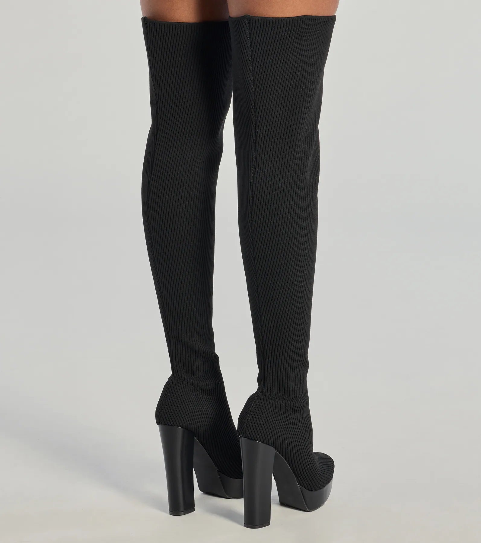 • Slay On Thigh-High Ribbed Knit Platform Boots