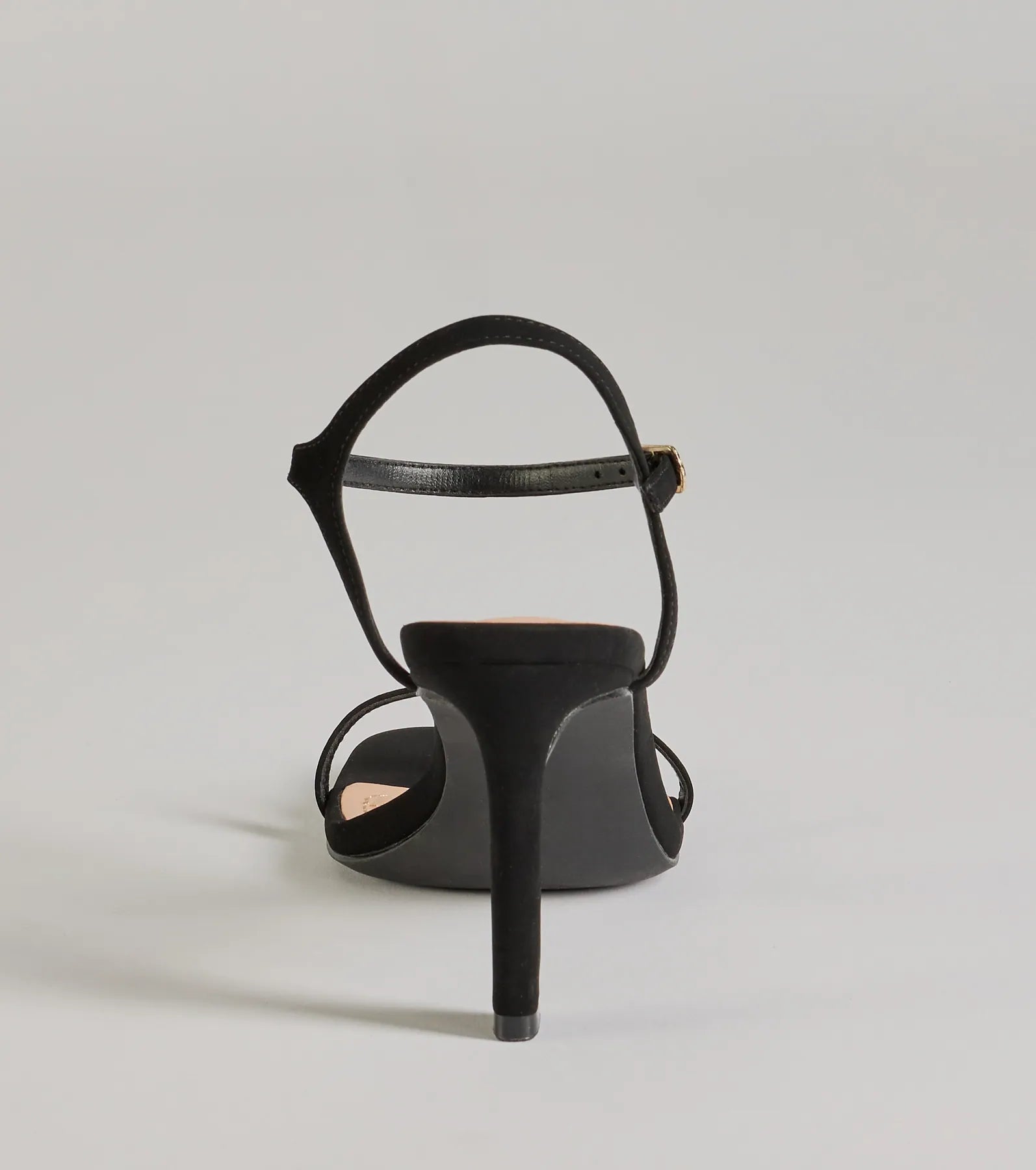 - Thin straps, adjustable ankle strap, buckle closure